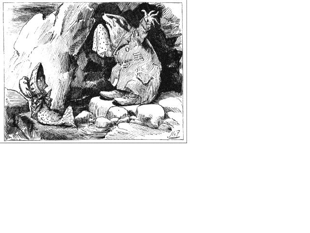 'Three badgers on a mossy stone'
