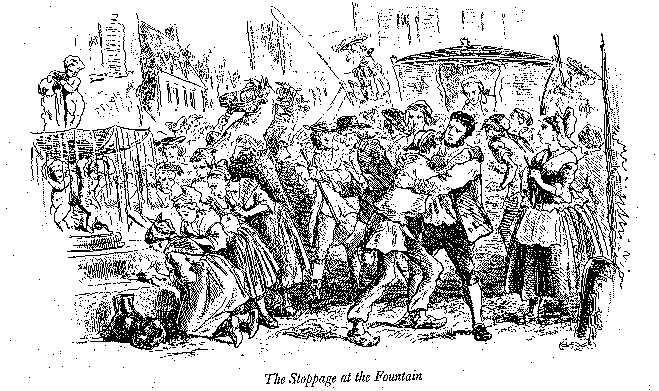 throat of Monseigneur, without the aid of four strong men besides the Cook. Yes. It took four men, all four a-blaze with gorgeous decoration, and the Chief of them unable to exist with fewer than two gold watches in his pocket, emulative of the noble and chaste fashion set by Monseigneur, to conduct the happy chocolate to Monseigneur's lips. One lacquey carried the chocolate-pot into the sacred presence; a second, milled and frothed the chocolate with the little instrument he bore for that function; a third, presented the favoured napkin; a fourth (he of the two old watches), poured the chocolate out. It was impossible Monseigneur to dispense with one of these attendants on the chocolate and hold his high place under the admiring Heavens. Deep would have been the blot upon his escutcheon if his chocolate had been ignobly waited on by only three men; he must have died of two. Monseigneur had been out at a little supper last night, where the Comedy and the Grand Opera were charmingly represented. Monseigneur was out at a little supper most nights, with fascinating company. So polite and so impressible was Monseigneur, that the Comedy and the Grand Opera had far more influence with him in the tiresome articles of state affairs and state secrets, than the needs of all France. A happy circumstance for France, as the like always is for all countries similarly favoured!--always was for England (by way of example), in the regretted days of the merry Stuart who sold it. Monseigneur had one truly noble idea of general public business, which was, to let everything go on in its own way; of particular public business, Monseigneur had the other truly noble idea that it must all go his way--tend to his own power and pocket. Of his pleasures, general and particular, Monseigneur had the other truly noble idea, that the world was made for them. The text of his order (altered from the original by only a pronoun, which is not much) `ran: `The earth and the fulness thereof are mine, saith Monseigneur.' Yet, Monseigneur had slowly found that vulgar embarrassments crept into his affairs, both private and public; and he had, as to both classes of affairs, allied himself perforce with a Farmer-General. As to finances public, because Monseigneur could not make anything at all of them, and must consequently let them out to somebody who could; as to finances private, because Farmer-Generals were rich, and Monseigneur, after generations of great luxury and expense, was growing poor. Hence Monseigneur had taken his sister from a convent, while there was yet time to ward off the impending veil, the cheapest garment she could wear, and had bestowed her as a prize upon a very rich Farmer-General, poor in family. Which Farmer-General, carrying an appropriate cane with a golden apple on the top of it, was now among the company in the outer rooms, much prostrated before by mankind--always excepting superior mankind of the blood of Monseigneur, who, his own wife included, looked down upon him with the loftiest contempt. A sumptuous man was the Farmer-General. Thirty horses stood in his stables, twenty-four male domestics sat in his halls, six body-women waited on his wife. As one who pre-tended to do nothing but plunder and forage where he could, the Farmer-General--howsoever his matrimonial relations conduced to social morality--was at least the greatest reality among the personages who attended at the hotel of Monseigneur that day. For, the rooms, though a beautiful scene to look at, and adorned with every device of decoration that the taste and skill of the time could achieve, were, in truth, not a sound business; considered with any reference to the scarecrows in the rags and nightcaps elsewhere (and not so far off, either, but that the watching towers of Notre Dame, almost equidistant from the two extremes, could see them both), they would have been an exceedingly uncomfortable business--if that could have been anybody's business, at the house of Monseigneur. Military officers destitute of military knowledge; naval officers with no idea |