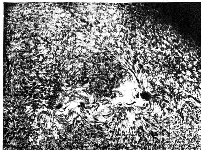 Fig 2. Solar Vortices. Hydrogen Spectroheliogram. (Mount Wilson Observatory)