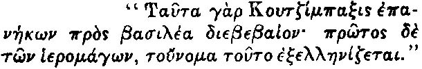 of this Kutzimpaxis, the first of the sacred magi, appears to be Bakhshi; the whole perhaps to be