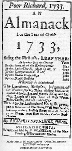 provision was made for keeping them clean. The invention of an open stove, still used and known as the Franklin stove, he gave freely to the public, refusing to accept a patent therefore, when one was offered him by the governor. Such a record speaks eloquently not only of Franklin's sagacity, but also of his genuine benevolence. Although it was his policy to keep his own personality in the background, it is no wonder that his services were recognized, and that he was now regarded as the leading citizen in Philadelphia. He was able to retire from active business in 1748, and was henceforward wholly employed in matters of public welfare. Since 1737, he had been postmaster of Philadelphia. In 1750, he was elected a member of the General Assembly. A Man of Letters.We have already noted the modest beginnings of Franklin's literary work in the contributions made anonymously, while an apprentice, to his brother's paper in Boston. These articles, signed with the pen-name Silence Dogood, inspired by Cotton Mather's Essays to do Good, and formed on the style of Addison, were merely experimental. The Busy Body papers, contributed to the Philadelphia Mercury in 1728-29, are not notable except for their well-developed sense of humor. But in 1732, Franklin published the first issue of his famous Almanac, which for a quarter of a century appeared annually, exercising no small influence on habits and morals throughout the colonies. The Almanac.To appreciate the popularity of Franklin's annual, it is necessary to recall the lack of original literature in America at that time. Among the common people, except the Bible, the printed sermons of the New England clergy, and their theological pamphlets, there was little if any reading matter of any sort. The almanac, however, was an established and cherished institution. It was as universal as the Bible itself. Various printers issued almanacs; peddlers carried them about in their packs; one hung in every chimney- corner. Their owners used them as receptacles for their memoranda and accounts. Such crude paragraphs and wise saws as might be found inserted among the calculations supplied about everything in the way of "profane" literature which was accessible to the people at large. No less than seven of these annual publications were appearing regularly in Philadelphia when Franklin's first issue appeared. Their predictions were vague and unsatisfying. "Rain here or in South Carolina," said one; "cold to the northward, warm to the southward," it declared. The editors, however, prided themselves on the fact that if they missed the mark in their weather forecasts, they were usually correct in placing the day of the week on its proper date in the month -- and that, after all, was the most useful thing in an almanac. "Poor Richard."The new publication, "by Richard Saunders, Philomath," was different from its predecessors. Franklin