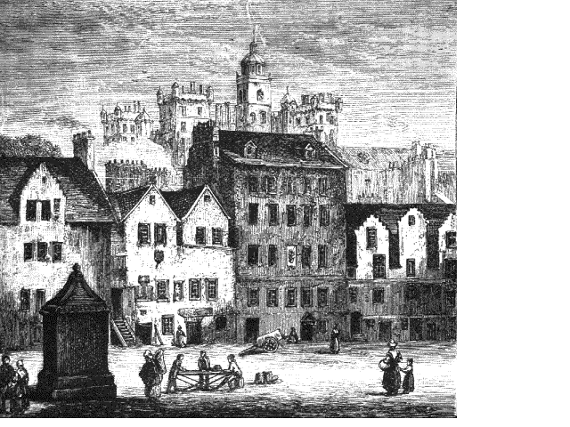 Notwithstanding many whispered warnings as to the danger of undertaking such a hazardous work, Michael Naesmyth and his men encamped upon the spot, though without the protection of the Government force. Having erected a temporary residence for their accommodation, he proceeded with the building of the fort. The work was well advanced by the end of 1703, although the Government had treated all Naesmyth's appeals for protection with evasion or contempt. Winter set in with its usual force in those northern regions. One dark and snowy night, when Michael and his men had retired to rest, a loud knocking was heard at the door. "Who's there?" asked Michael. A man outside replied, "A benighted traveller overt aken by the storm" He proceeded to implore help, and begged for God's sake that he might have shelter for the night. Naesmyth, in the full belief that the traveller's tale was true, unbolted and unbarred the door, when in rushed Rob Roy and his desperate gang. The men, with the dirks of the Macgregors at their throats, begged hard for their lives. This was granted on condition that they should instantly depart, and take an oath that they should never venture within the Highland border again. Michael Naesmyth and his men had no alternative but to submit, and they at once left the bothy with such scanty clothing as the Macgregors would allow them to carry away. They were marched under an armed escort through the snowstorm to the Highland border, and were there left with the murderous threat that, if they ever returned to the fort, they would meet with certain death. Another attempt was made to build the fort at Inversnaid. But Rob Roy again surprised the small party of soldiers who were in charge. They were disarmed and sent about their business. Finally, the fort was rebuilt, and placed under the command of Captain (afterwards General) Wolfe. When peace fell upon the Highlands and Rob Roy's country became the scene of picnics, the fort was abandoned and allowed to go to ruin. Poor Michael never recovered from the cold which he caught during his forced retreat from Inversnaid. The effects of this, together with the loss and distress of mind which he experienced from the Government's refusal to pay for his work -- notwithstanding their promise to protect him and his workmen from the Highland freebooters -- so preyed upon his mind that he was never again able to devote himself to business. One evening, whilst sitting at his fireside with his grandchild on his knee, a death-like faintness came over him; he set the child down carefully by the side of his chair, and then fell forward dead on his hearthstone. Thus ended the life of Michael Naesmyth in 1705, at the age of fifty-three. He was buried by the side of his ancestors in the old family tomb in the Greyfriars Churchyard.