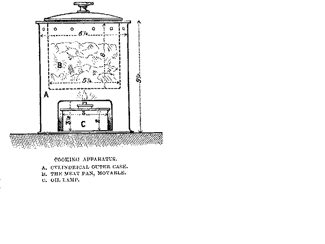 me on my special good fortune in having the inestimable advantage of being associated as assistant workman with one of the greatest mechanical engineers of the day. Mr. Maudslay offered to conduct Faraday through his workshops, and I was permitted to accompany them. I was much impressed with the intelligent conversation of Faraday, as well as with the quickness he exhibited in appreciating not only the general excellence of the design and execution of the works in progress, but his capacity for entering into the technical details of the composite tools and machinery which he saw during his progress through the place. This most pleasant and memorable meeting with the great philosopher initiated a friendship which I had the good fortune to continue until the close of his life. It was, of course, an immense advantage for me to be so intimately associated with Mr. Maudslay in carrying on his experimental work. I was not, however, his apprentice, but his assistant workman. It was necessary, therefore, in his opinion, that I should receive some remuneration for my services. Accordingly, at the conclusion of my first week in his service, he desired me to go to his chief cashier and arrange with him for receiving whatever amount of weekly wages I might consider satisfactory. I went to the counting-house and had an interview with Mr. Young* the cashier, a most worthy man. Knowing as I did the great advantages of my situation, and having a very modest notion of my own worthiness to occupy it, I said, in answer to Mr. Young's question as to the amount of wages I desired, that "if he did not think ten shillings a week too much I could do well enough with that." "Very well" said he,"let it be so" And he handed me over half a sovereign! I had determined, after I obtained a situation, not to cost my father another shilling. I knew how many calls he had upon him, at a time when he had his own numerous household to maintain. I therefore resolved, now that I had begun life on my own resources, to maintain myself, and to help him rather than be helped any longer. Thus the first half-sovereign I received from Mr. Young was a great event in my life. It was the first wages, as such, that I had ever received. I well remember the high satisfaction I felt as I carried it home to my lodgings; and all the more so as I was quite certain that I could, by strict economy and good management, contrive to make this weekly sum of ten shillings meet all my current expenses. I had already saved the sum of £20, which I placed in the bank as a deposit account. It was the residue of the sale of some of my model steam-engines at Edinburgh. My readers will remember that I brought with me a model steam-engine to show to Mr. Maudslay as a specimen of my handiwork. It had gained for me the situation that I desired, and I was now willing to dispose of it. I found a purchaser in Mr. Watkins, optician at Charing Cross, who supplied such apparatus to lecturers at Mechanics' Institutions. He gave me £35 for the model, and I added the sum to my deposit account. This little fund was quite sufficient to meet any expenses beyond those of a current weekly nature. But I was resolved that my wages alone should maintain me in food and lodging. I therefore directed my attention to economical living. I found that a moderate dinner at an eating-house would cost move than I could afford to spend. In order to keep within my weekly income I bought the raw materials and cooked them in my own way and to my own taste. I set to and made a drawing of a very simple, compact, and handy cooking apparatus. I took the drawing to a tinsmith near at hand, and in two days I had it in full operation. The apparatus cost ten shillings, including the lamp. As it contributed in no small degree to enable me to carry out my resolution, and as it may serve as a lesson to others who have an earnest desire to live economically, I think it may be useful to give a drawing and a description of my cooking stove. The cooking or meat pan rested on the upper rim of the external cylindrical case, and was easily removable in order to be placed handy for service. The requisite heat was supplied by an oil lamp with three small single wicks, though I found that one wick was enough. I put the meat in the pot, with the |