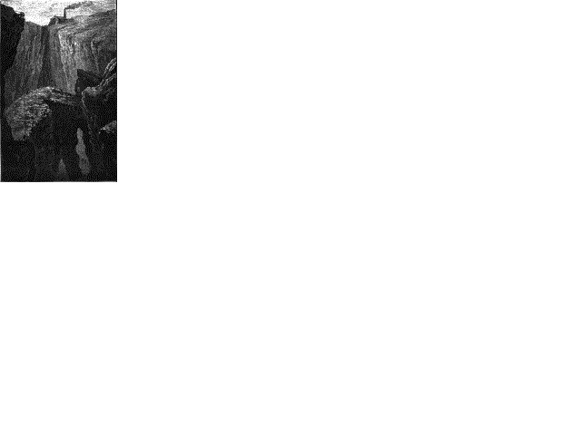 wait until the job was over. In about an hour or so I was again under weigh. And so on da capo, until about six in the evening, when I found myself within sight of the great mine. The post-house where I was set down was an inn, though without a signboard. The landlady was a bright, cheery, jolly woman. She could not speak a word of English, nor I a word of Dannemora Swedish. I was very thirsty and hungry, and wanted something to eat. How was I to communicate my wishes to the landlady? I resorted, as I often did, to the universal language of the pencil. I took out my sketch-book, and in a few seconds made a sketch of a table, with a dish of smoking meat upon it, a bottle and a glass, a knife and fork, a loaf, a saltcellar, and a corkscrew. She looked at the drawing and gave a hearty laugh. She nodded pleasantly, showing that she clearly understood what I wanted. She asked me for the sketch, and went into the back garden to show it to her husband, who inspected it with great delight. I went out and looked about the place, which was very picturesque. After a short time, the landlady came to the door and beckoned me in, and I found spread out on the table everything that I desired -- a broiled chicken, smoking hot from the gridiron, a bottle of capital home-brewed ale, and all the et ceteras of an excellent repast. I made use of my pencil in many ways. I always found that a sketch was more useful than a blundering sentence. Besides, it generally created a sympathy between me and my entertainers. My visit to the Dannemora Mine at Osterby was one of peculiar interest. I may in the first place say that the immense collection of iron ore at that point has been the result of the upheaval of a vast volume of molten igneous ore, which has been injected into the rock, or deposited in masses under the crust of the earth. In some cases the quarried ore yields from 50 to 70, and even as much as 90 per cent of iron. The Dannemora Mine is a vast quarry open to the sky. When you come near it the place looks like a vast deep pit, with an unfathomable bottom. Ghostlike, weird-looking pinnacles of rocks stand out from its profound depths; but beyond these you see nothing but wreaths of smoke curling up from below. The tortuous chasm in the earth, caused by the quarries beneath, is about half a mile long, and about a thousand feet wide.