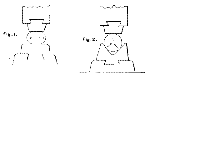 Introduction of the V Anvil.In connection with my Steam Hammer, when employed in forging great cylindrical shafts, I introduced what I termed my V anvil. Its employment has most importantly contributed to secure perfect soundness in such class of forgings. In the old system of forging cylindrical shafts, the bar was placed upon a flat-faced anvil. The effect of each blow of the hammer upon the work was to knock the shaft into an oval form (see Fig. 1); and the inevitable result of a succession of such blows was destruction of the soundness of the centre or axis of the shaft.