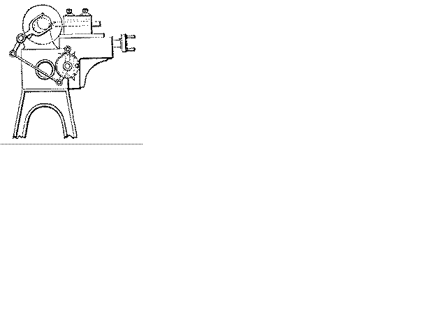 case of some such material as cold malleable iron, it occurred to me to apply the tranquil but vast power of a hydraulic press to punch out a large hole in a thick cake of malleable iron. Knowing that my excellent friend John Rick had in his works at Bolton one of the most powerful hydraulic presses then existing, contrived and constructed by his ingenious father, the late Benjamin Hick, I proceeded to Bolton, and explained Dr. Faraday's requirement, when, with his usual liberal zeal, Mr. Hick at once placed the use of his great hydraulic press at my service. Having had a suitable cake of steam-hammered malleable iron given to me for the purpose in question, by my valued friend Thomas Lever Rushton of the Bolton Ironworks, we soon had the cake of iron placed in the great press. It was 5 inches thick,18 inches long, and 15 inches wide. Placing a cylindrical coupling box of cast-iron on the table of the press, and then placing the thick cake of iron on it, and a short cylindrical mass of iron (somewhat of the size and form of a Stilton Cheese) on the iron cake, the coupling box acting as the Bolster of the extemporised punching machine, -- the press was then set to work. We soon saw the Stilton Cheese-like punch begin to sink slowly and quietly through the 5-inch thick cake of iron, as if it had been stiff clay. The only sound heard was when the punched-out mass dropped into the recess of the coupling below. Such a demonstration of tranquil but almost resistless power of a hydraulic press had never, so far as we were aware, been seen before. The punched of iron, together with the punched-out disc, were then packed off to Faraday; and great was his delight in having his request so promptly complied with. Great also was the wonder of his audience when the punched plate was placed upon the lecture table. This feat of Benjamin Hick's great hydraulic press set me a-thinking. I conceived the idea that the application of hydraulic press power might serve many similar purposes in dealing with ultra thick plates or bar iron, -- such as the punching out of holes, and cutting thick bars and plates into definite shapes, as might be required. I suggested the subject to my friend Charles Fox, head of the firm of Fox, Henderson, and Co. He had taken a large contract for a chain bridge, the links of which were to be of thick flat iron bars, with the ends broadened out for the link-pins to pass through. He had described to me the trouble and cost they had occasioned him in drilling the holes, and in cropping the rude-shaped ends of the bars into the required form. I advised him to try the use of the hydraulic press as a punching-machine, and also as a cutting-machine to dress the ends of the great links. He did so in due time, and found the suggestion of great service and value to him in this, and in other cases of a similar kind. The saving of cost was very great, and the work was much more perfect than under the former system. A Turn-table "Trunnion Vision" Reflecting Telescope.This is so arranged that the observer can direct the Telescope and view an object in any part of the heavens without moving from his seat, which is attached to the turn-table. For explanations, see text, p. 337. A Double or Ambidexter Self-acting Turning-Lathe, with "Dead Gutters," specially adapted for turning Bolts and suchlike detail Parts of Machinery.