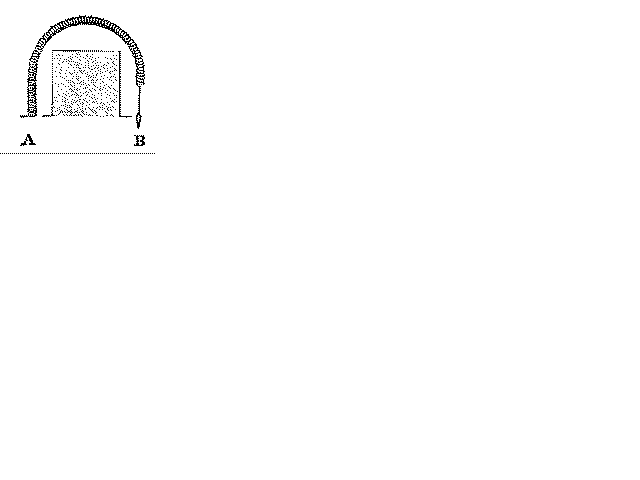 Society of Manchester, illustrating my paper with many drawings. But as my paper was of considerable length, and as the illustrations would prove costly to engrave, it was not published in the Society's Transactions. They are still, however, kept in the library for reference by those who take a special interest in the subject. A Mode of transmitting Rotary Motion by means of a Flexible Shaft, formed of a Coiled Spiral Wire or Rod of Steel.While assisting Mr. Maudslay in the execution of a special piece of machinery, in which it became necessary to have some holes drilled in rather inaccessible portions of the work in hand, and where the employment of the ordinary drill was impossible, it occurred to me that a flexible shaft, formed of a closely coiled spiral of steel wire, might enable us to transmit the requisite rotary motion to a drill attached to the end of this spiral shaft. Mr. Maudslay was much pleased with the notion, and I speedily put it in action by a close coiled spiral wire of about two feet in length. This was found to transmit the requisite rotary motion to the drill at the end of the spiral with perfect and faithful efficiency. The difficulty was got over, to Mr. Maudslay's great satisfaction. So far as I am aware, such a mode of transmitting rotary motion was new and original. The device was useful, and proved of essential service in other important applications. By a suitably close coiled spiral steel wire I have conveyed rotary motion quite round an obstacle, such as is indicated in the annexed figure.
