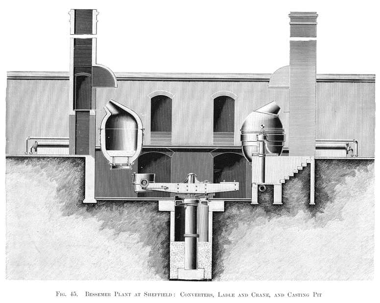 - Bessemer Plant at Sheffield: Convertor, Ladle and Crane, and Casting Pit