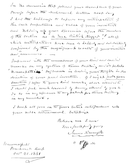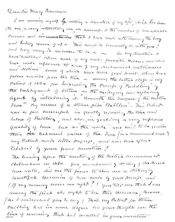 - Facsimile of a Letter from Mr James Nasmyth(1st page)